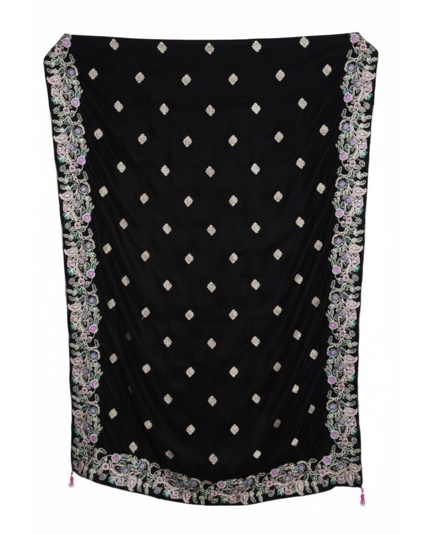Black Velvet Embroidered Shawl