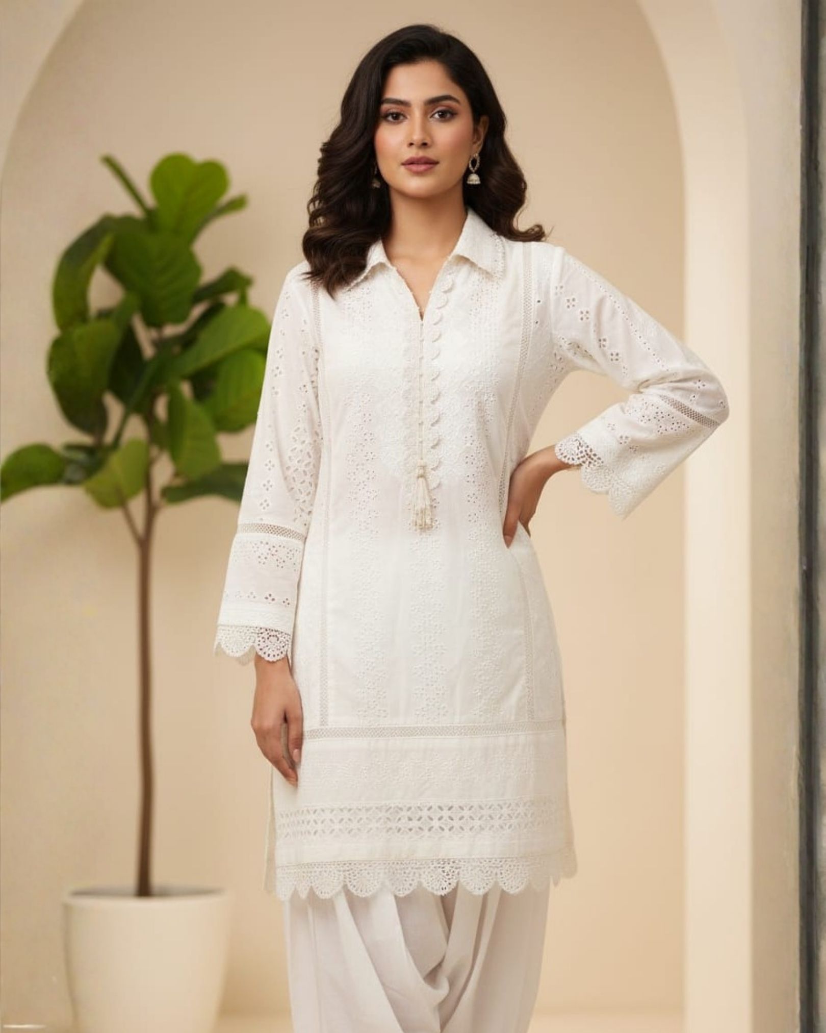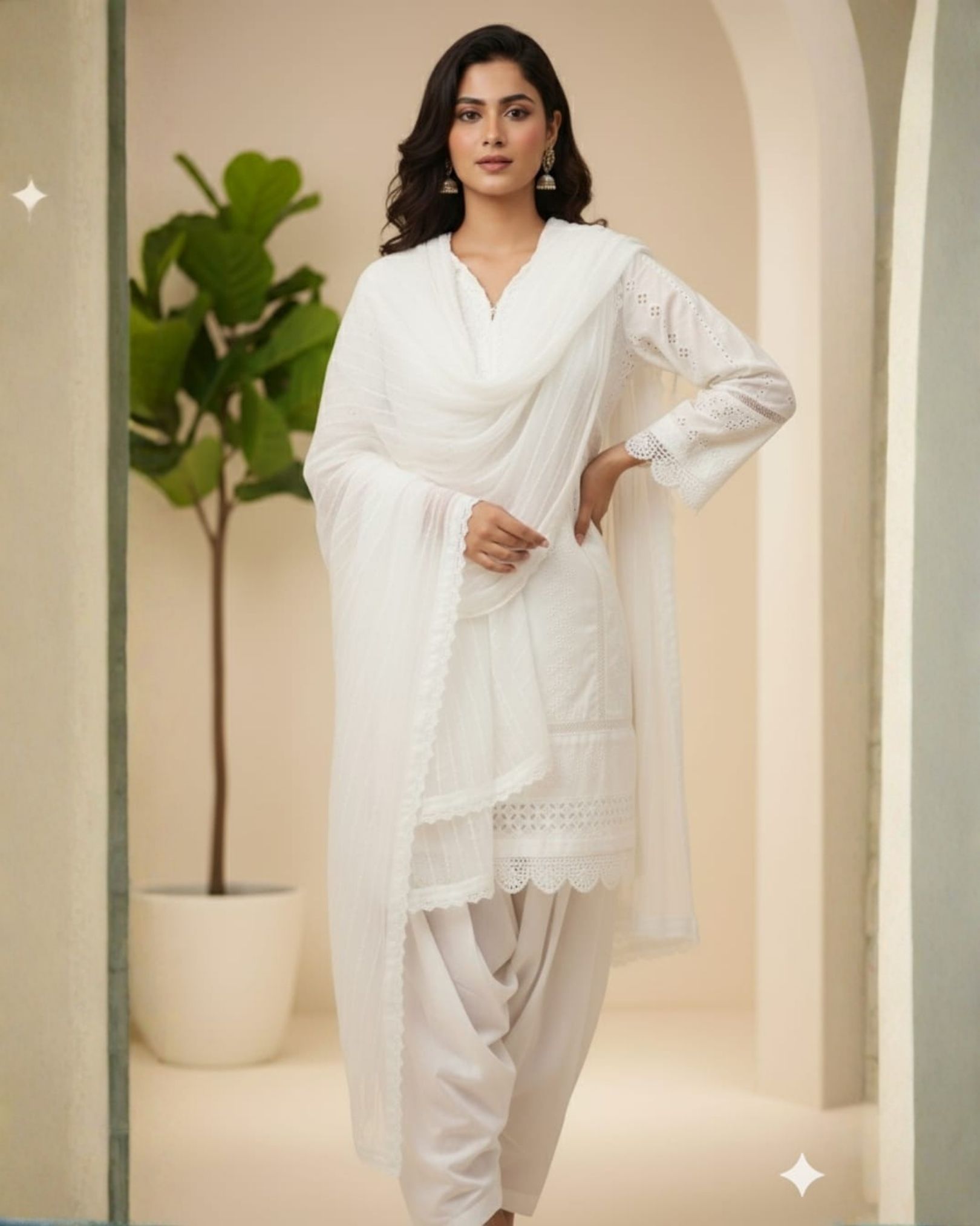Step into ethereal beauty with the Chickenkari Snow White 3-Piece, a masterpiece of grace and tradition. Crafted from luxurious cotton chickenkari, this ensemble embodies purity and sophistication with its delicate embroidery and refined detailing.