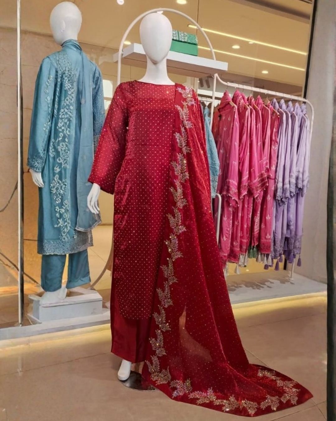 Ideal for Eid gatherings, wedding festivities, formal dinners, and celebratory soirées, this 3-piece set is crafted for women who appreciate classic color palettes elevated with meticulous detailing.