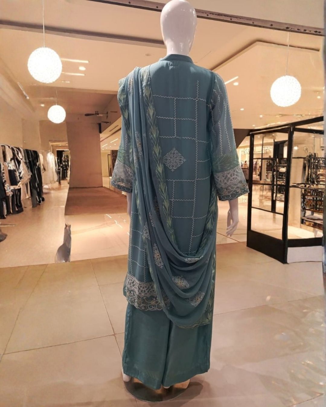 The tranquil sea green shade exudes freshness and grace, while the delicate embroidery and refined tailoring lend it an effortlessly elegant finish. Perfect for festive gatherings or graceful daytime occasions, this suit brings together comfort and class in perfect harmony.