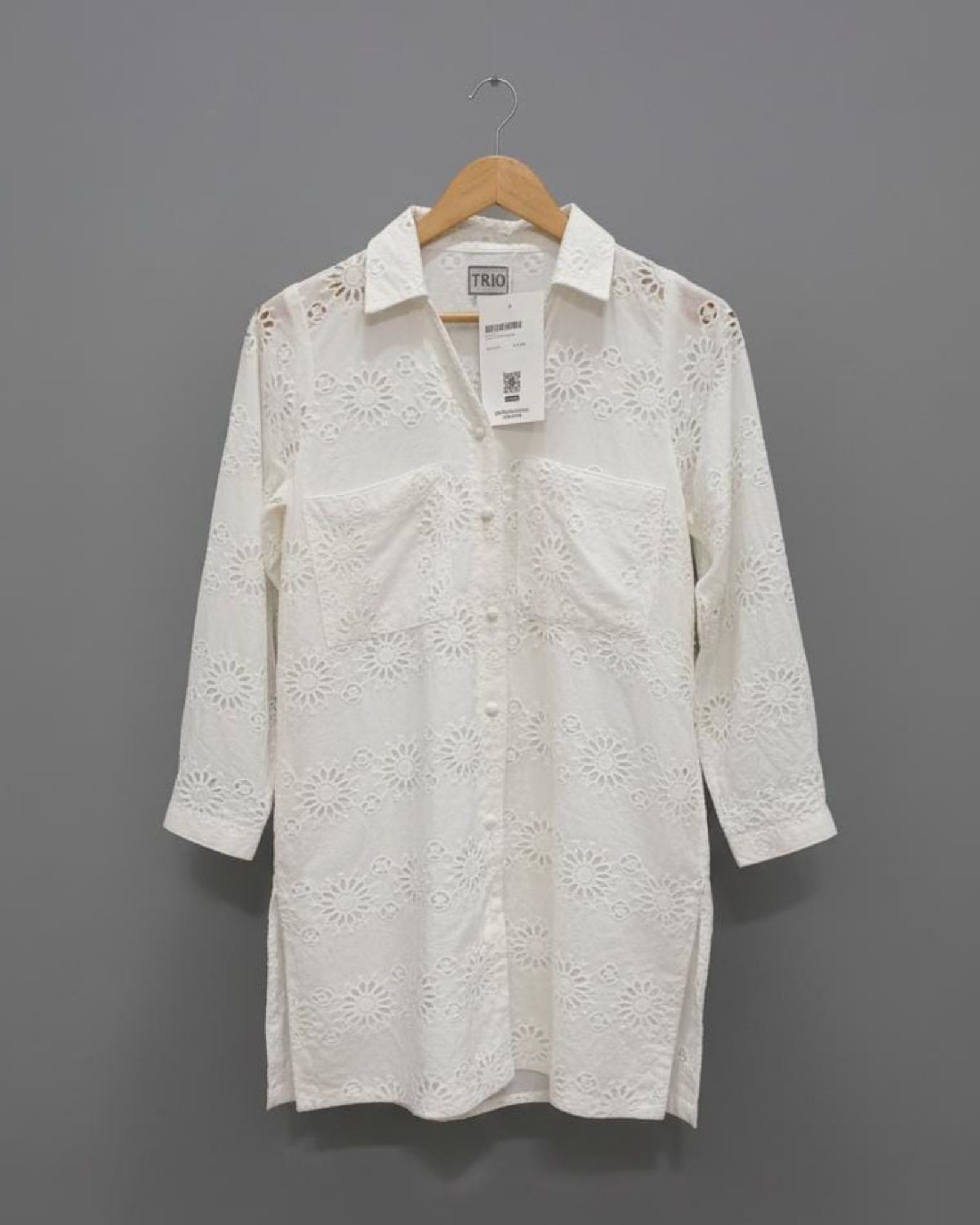 With its delicately detailed neckline, flattering straight cut, and airy cotton texture, this shirt is the perfect blend of tradition and contemporary charm. Whether styled for a formal gathering or a relaxed outing, it radiates poise and understated luxury.